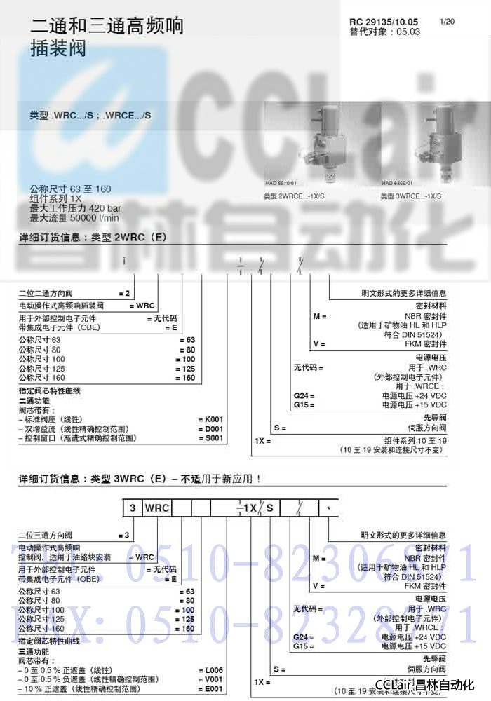 3WRC63L006-1X/S/M,2WRCE63D001-1X/SG24/M, 二通和三通高頻響插裝閥,力士樂(lè)REXROTH,德國(guó)力士樂(lè)