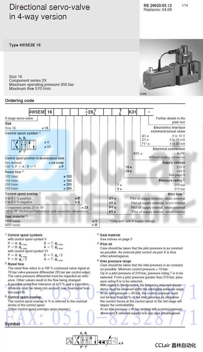 4WSE3E16V100D2X/VXY9/24K31C1,4WSE3E16V100D2X/VPT9/15K31A1,方向伺服閥,力士樂REXROTH,德國(guó)力士樂