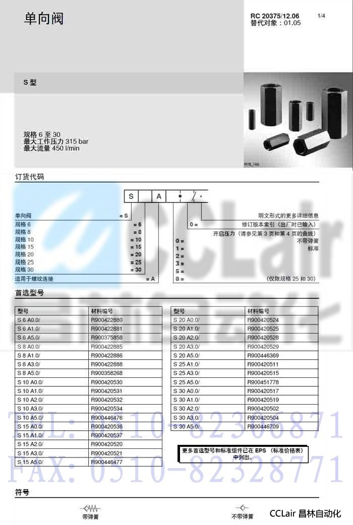 S15A3.0/ R900420521,S15A5.0/ R900446477,S20A0.0/ R900420524,單向閥,力士樂REXROTH,德國(guó)力士樂