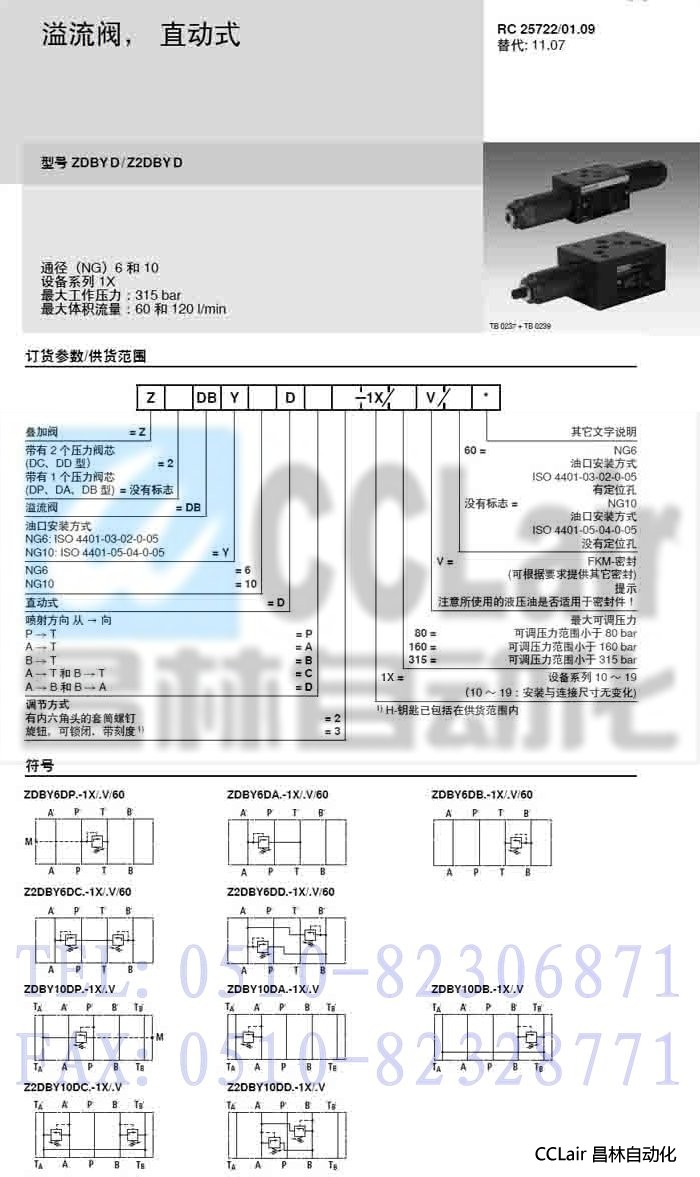 ZDBY6DP2-1X/315V/60,ZDBY6DP2-1X/160V/60,直動式溢流閥,力士樂REXROTH,德國力士樂
