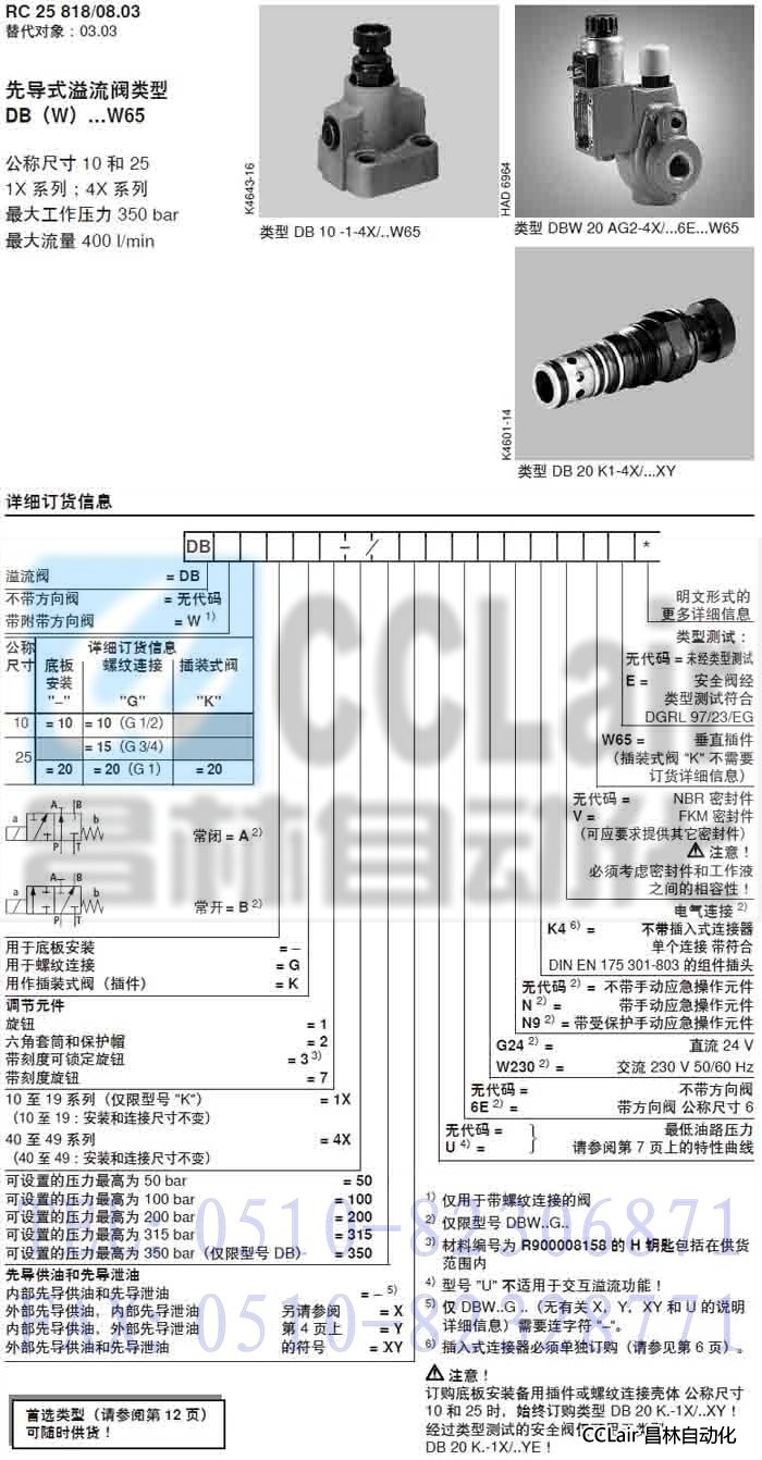 DB10-1-4X/200XUW65,DB10-1-4X/200YVW65,DB10-1-4X/200XYW65,先導(dǎo)式溢流閥,力士樂REXROTH,德國力士樂 |
