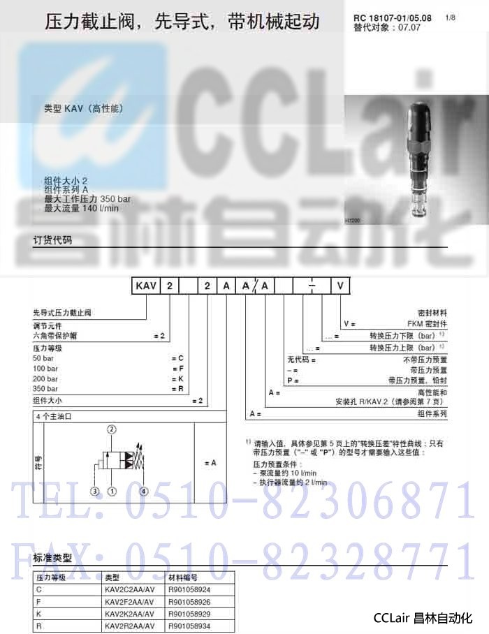 KAV2C2AA/AV,KAV2F2AA/AV,KAV2K2AA/AV,KAV2R2AA/AV,先導(dǎo)式壓力截止閥,力士樂REXROTH,德國力士樂