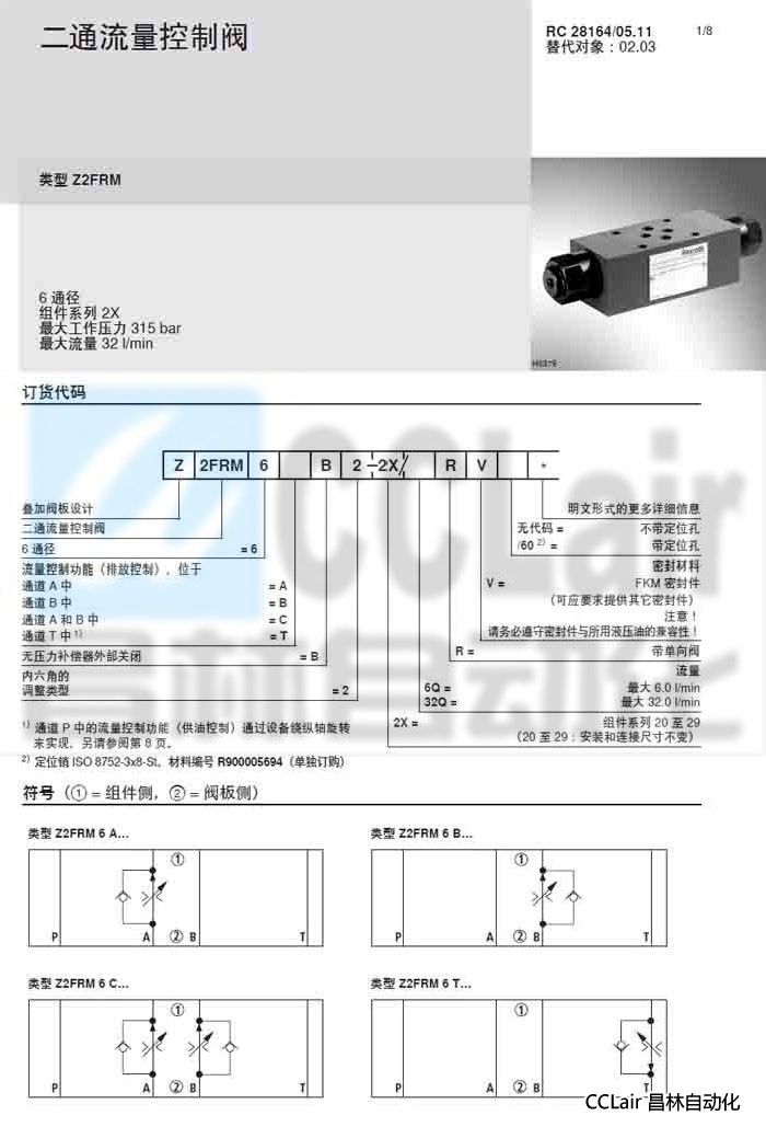 R900910904 Z2FRM6CB2-2X/6QRV,R900549687 Z2FRM6CB2-2X/32QRV 二通流量控制閥,力士樂REXROTH,德國力士樂 |