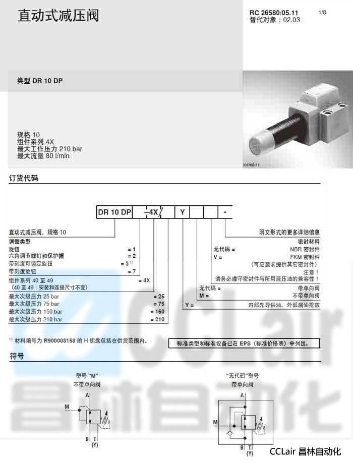 DR10DP1-4X/150Y,DR10DP1-4X/210YM,DR10DP1-4X/210YMV ,直動(dòng)式減壓閥,力士樂(lè)REXROTH,德國(guó)力士樂(lè)