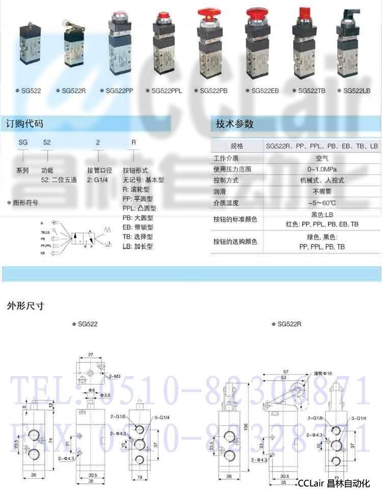 SG522,SG522R,SG522PP,SG522PPL,SG522PB,SG522TB,SG522EB,SG522LB,二位五通手控閥/機(jī)控閥
