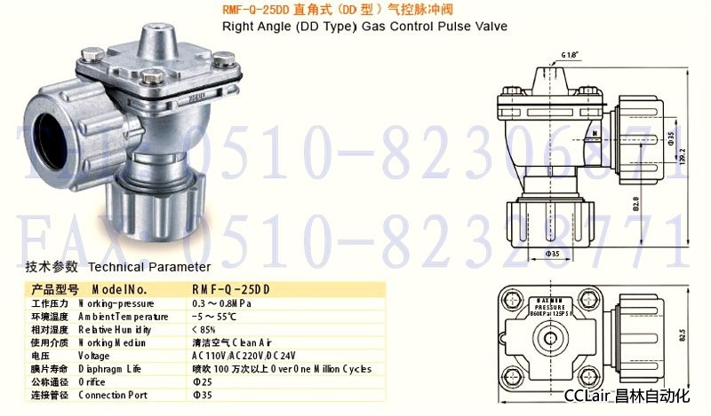 RMF-Q-25DD,直角式(DD型)氣控脈沖閥