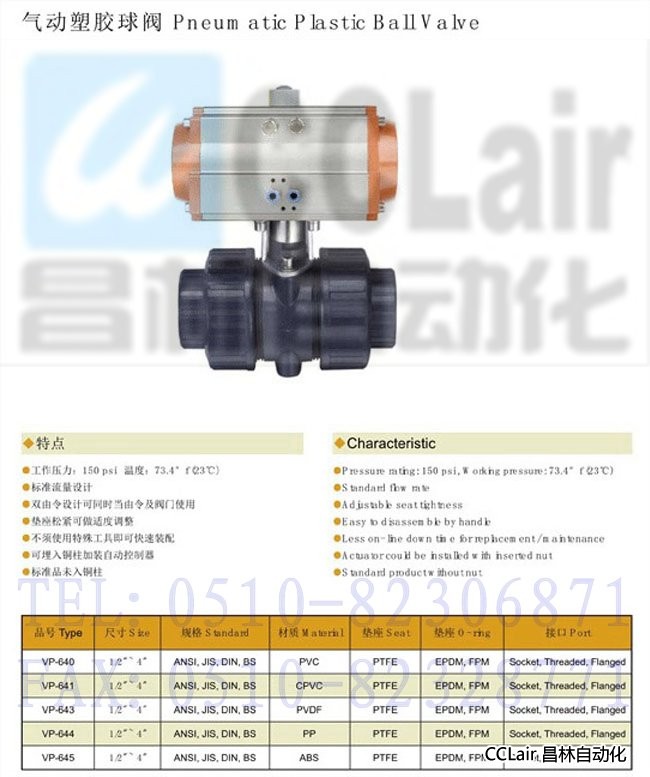 VP-640,VP-641,VP-643,VP-644,VP-645,氣動塑膠球閥
