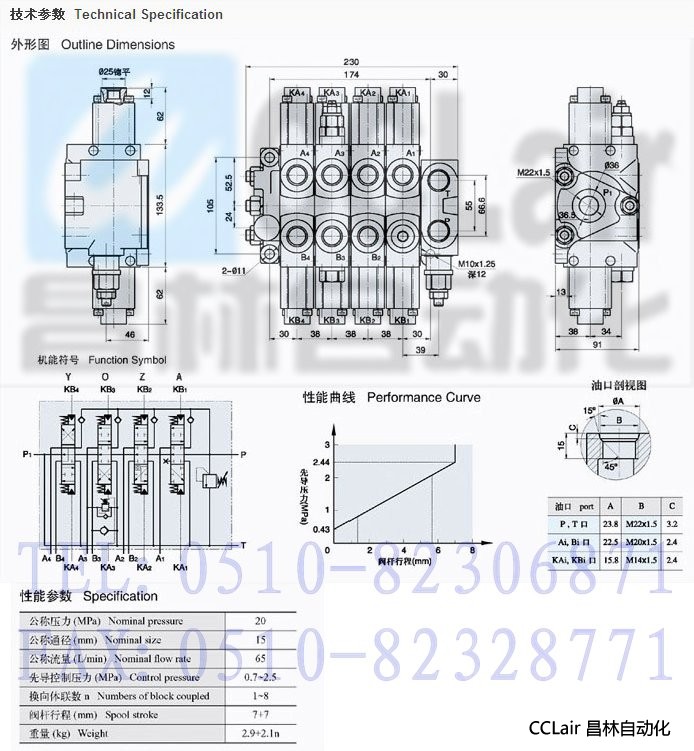 XYDL*-F15L 系列多路閥是在DL*-F15L 系列多路閥的基礎(chǔ)上開發(fā)的,先導(dǎo)閥控制液動換向。XYDL1-F15L 系列多路閥的回油體帶
