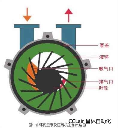 SKA型水環(huán)式真空泵如圖(1)所示葉輪3偏心地安裝在泵體之內(nèi),起動(dòng)時(shí)向泵內(nèi)注入一定高度的水,因此當(dāng)葉輪3旋轉(zhuǎn)時(shí),水受離心力的作用而在泵體內(nèi)壁形成一旋轉(zhuǎn)水環(huán)1,水環(huán)下部內(nèi)表面與輪轂相切,沿箭頭方向旋轉(zhuǎn),在前半轉(zhuǎn)過程中,SKA型水環(huán)式真空泵水環(huán)內(nèi)表面逐漸與輪轂脫離,因此在葉輪葉片間與水環(huán)形成封閉空間,隨著葉輪的旋轉(zhuǎn),該空間逐漸擴(kuò)大,空間氣體壓力降低,氣體自圓盤吸氣口被吸入;在后半轉(zhuǎn)過程中,水環(huán)內(nèi)表面逐漸與輪轂靠近,葉片間的空間逐漸縮小,空間氣體壓力升高,高于排氣口壓力時(shí),葉片間的氣體自圓盤排氣口被排出。如此葉輪每轉(zhuǎn)動(dòng)一周,葉片間的空間吸排氣一次,許多空間不停地工作,SKA型水環(huán)式真空泵就連續(xù)不斷地抽吸或壓送氣體。