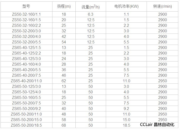 | ZS50-32-160/2.2 | 25 | 12.5 | 2.2 | 2900 |