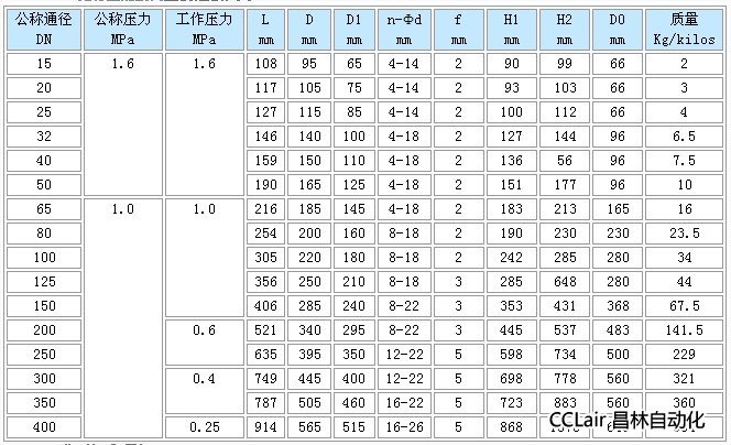 壓力等級:PN(MPa) 0.6 1.0 1.6