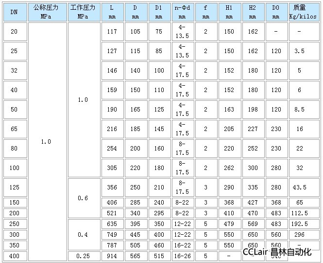 壓力等級(jí):PN(MPa) 0.6 1.0 1.6