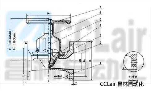 部件列表:1.閥體 2.閥體襯里 3.隔膜 4.閥瓣 5.閥桿 6.閥蓋 7、手輪