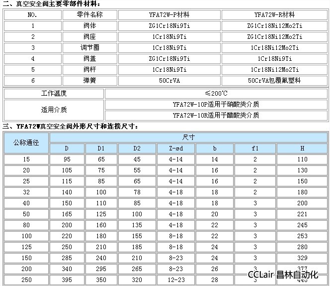 YFA72W-10P,YFA72W-10R,真空安全閥