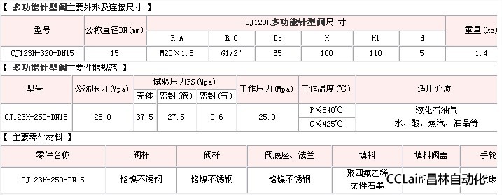 CJ123H-250-DN15,多功能針型閥