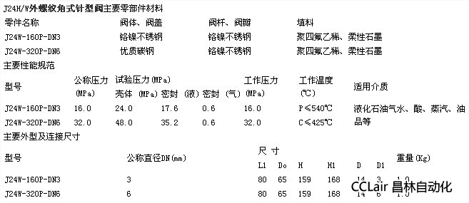 J24W-160P-DN3,J24W-320P-DN6,外螺紋角式針型閥
