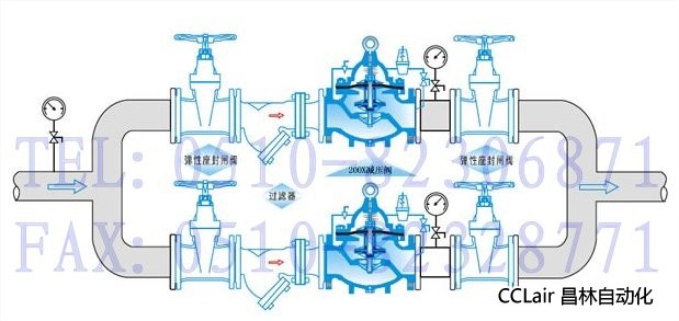 200X減壓穩(wěn)壓閥由主閥、導(dǎo)閥、針閥、球閥、微型過濾器和壓力表組成水力控制接管系統(tǒng)。使用時(shí),當(dāng)調(diào)定出口壓力后,能自動(dòng)保持穩(wěn)定出口壓力。