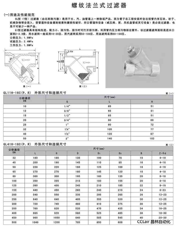 GL11H-16C,GL11H-16P,GL11H-16R,GL41H-16P,GL41H-16R,螺紋法蘭式過濾器 |