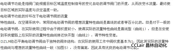 DZLM-16動(dòng)態(tài)平衡電動(dòng)調(diào)節(jié)閥是動(dòng)態(tài)平衡與電動(dòng)調(diào)節(jié)一體化的產(chǎn)品,主要適用于暖通空調(diào)系統(tǒng)末端空調(diào)設(shè)備(如空調(diào)箱、新風(fēng)機(jī)組、空氣處理機(jī))的溫度控制,通過配置智能模塊控制裝置,可方便的對(duì)各環(huán)路的流量、溫度進(jìn)行自動(dòng)控制,實(shí)現(xiàn)合理利用能量,節(jié)能降耗,智能化管理。應(yīng)用此閥使末端設(shè)備只受標(biāo)準(zhǔn)控制信號(hào)的影響,而不受系統(tǒng)壓力波動(dòng)的影響,使系統(tǒng)調(diào)節(jié)更穩(wěn)定、更節(jié)能,特別適用于系統(tǒng)負(fù)荷變化較大的變流量系統(tǒng)中。