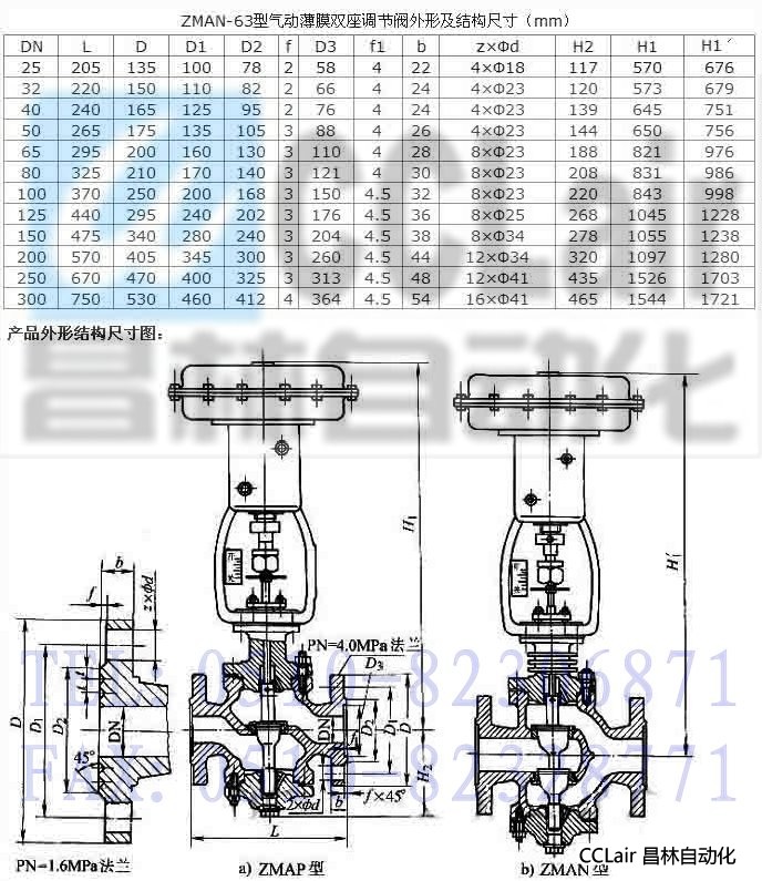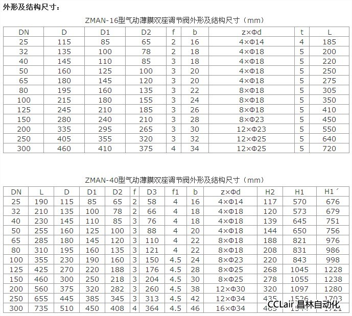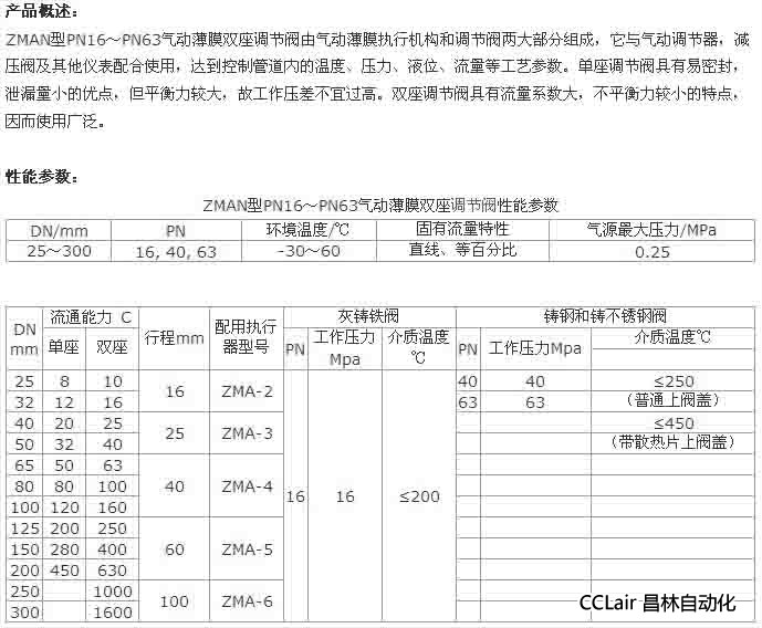 ZMAN-16,ZMAN-40,ZMAN-64,氣動薄膜雙座調(diào)節(jié)閥