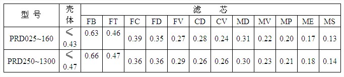 4 額定流量下的清潔濾芯壓降(單位:1×10