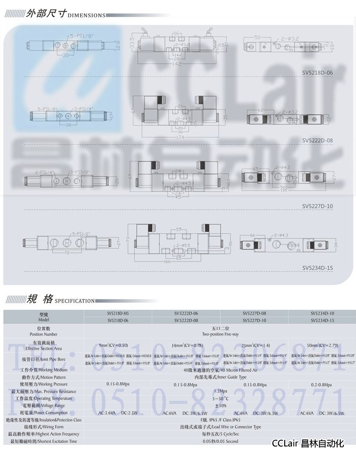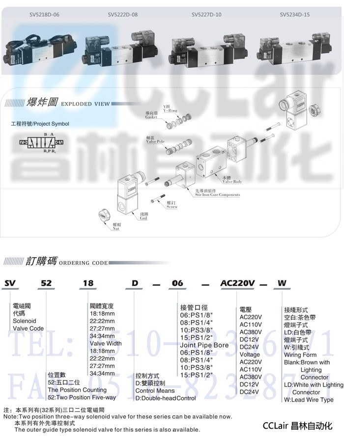 SV5222D-08,SV5222D-06,SV5218D-M5,SV5218D-06,五口二位電磁閥