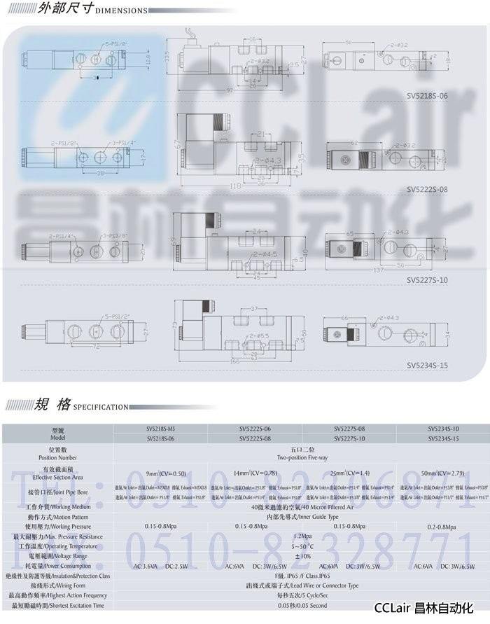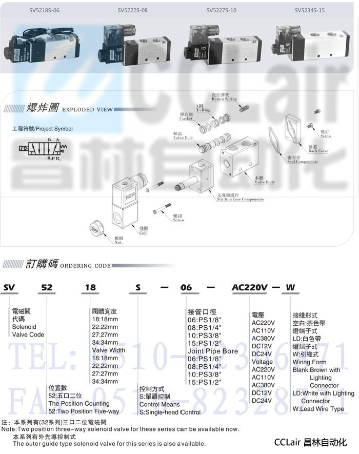 SV5222S-08,SV5222S-06,SV5218S-M5,SV5218S-06,五口二位電磁閥