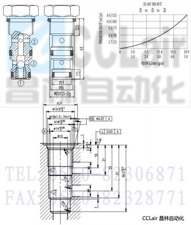 此閥使用時(shí),允許①口和③口中壓力較高的油口和②口接通,同時(shí)封閉壓力較低的油口。