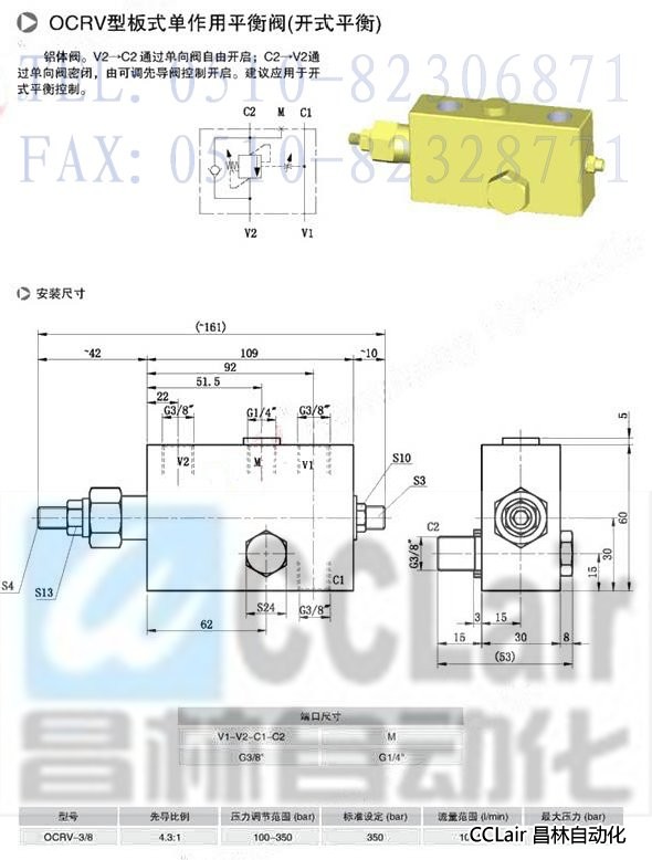 OCRV-3/8,板式單作用平衡閥(開式平衡)