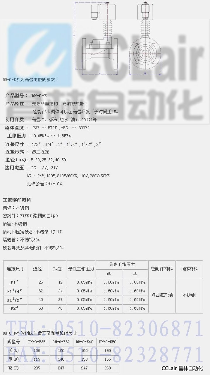 DH-O-E25,DH-O-E32,DH-O-E40,DH-O-E50,超高溫電磁閥
