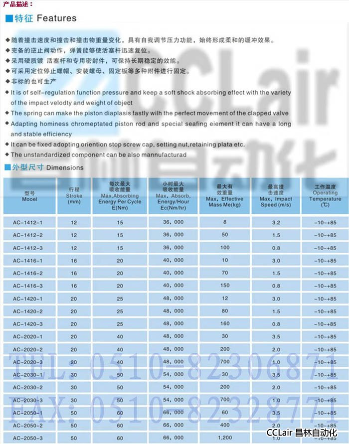 AC-1412-1,AC-1412-2,AC-1412-3,AC-14163-1,AC-1416-2,AC-1416-3,油壓緩沖器 |