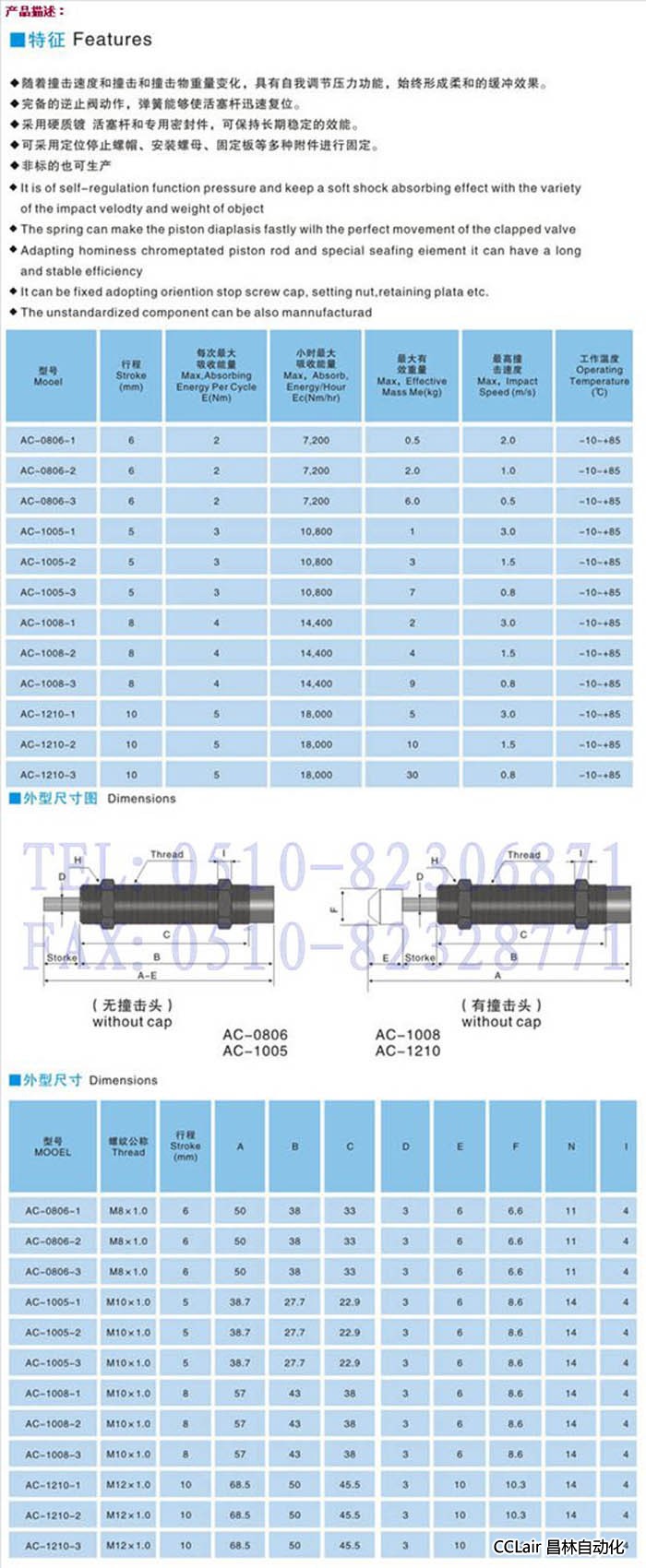 AC-0806-1,AC-0806-2,AC-0806-3,AC-1005-1,AC-1005-2,AC-1005-3,油壓緩沖器