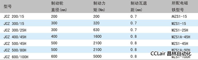 JCZ200/15,JCZ300/15,JCZ300/25H,JCZ400/45H,制動器