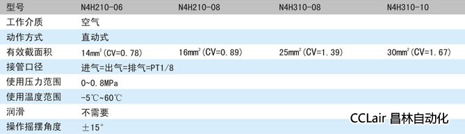 N4H系列手板閥用于工作溫度-5℃~60℃、免潤(rùn)滑、介質(zhì)為經(jīng)過(guò)濾、干燥后的清潔空氣、工作壓力