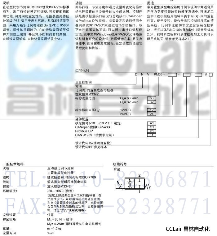 DNVPM33,插裝式比例節(jié)流閥 (內置集成型電控器)