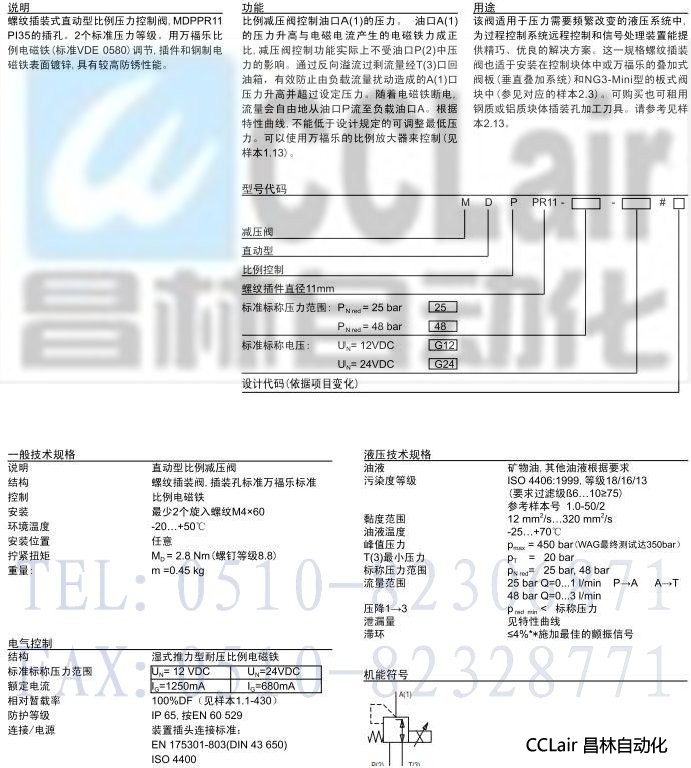 MDPR11,直動(dòng)式比例減壓插裝閥