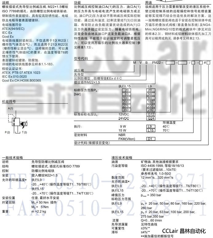 MVBPM22,防爆型先導式比例減壓插裝閥 Ex d II C