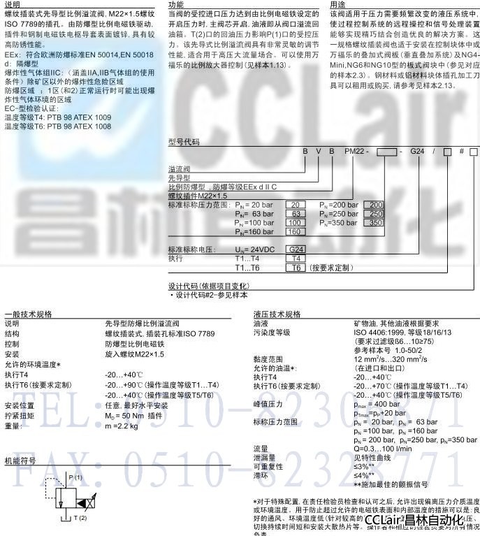 BVBPM22,BVBPM22-350-G24,防爆型先導(dǎo)式比例壓力溢流插裝閥EEx d II C