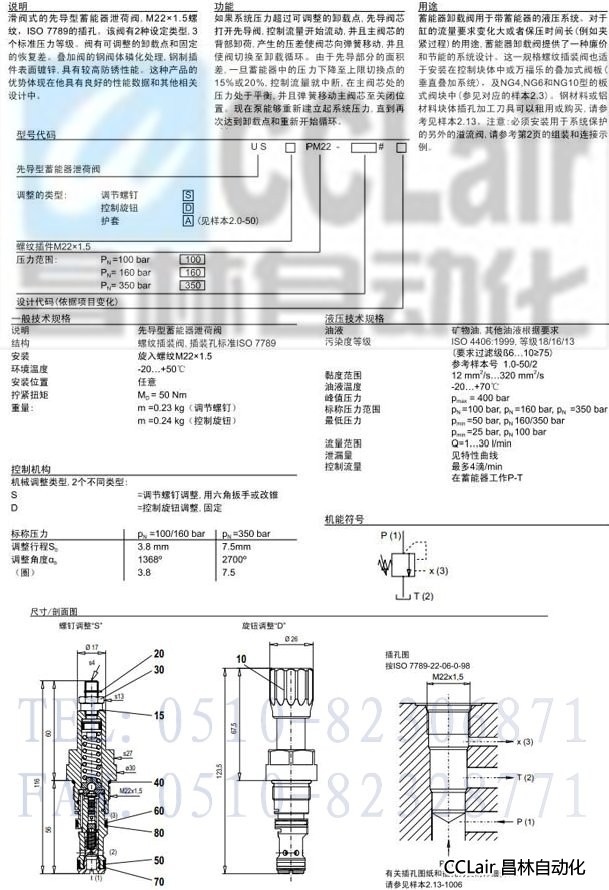 USDPM22-100,USSPM22-160,US.PM22,先導(dǎo)式蓄能器泄荷插裝閥