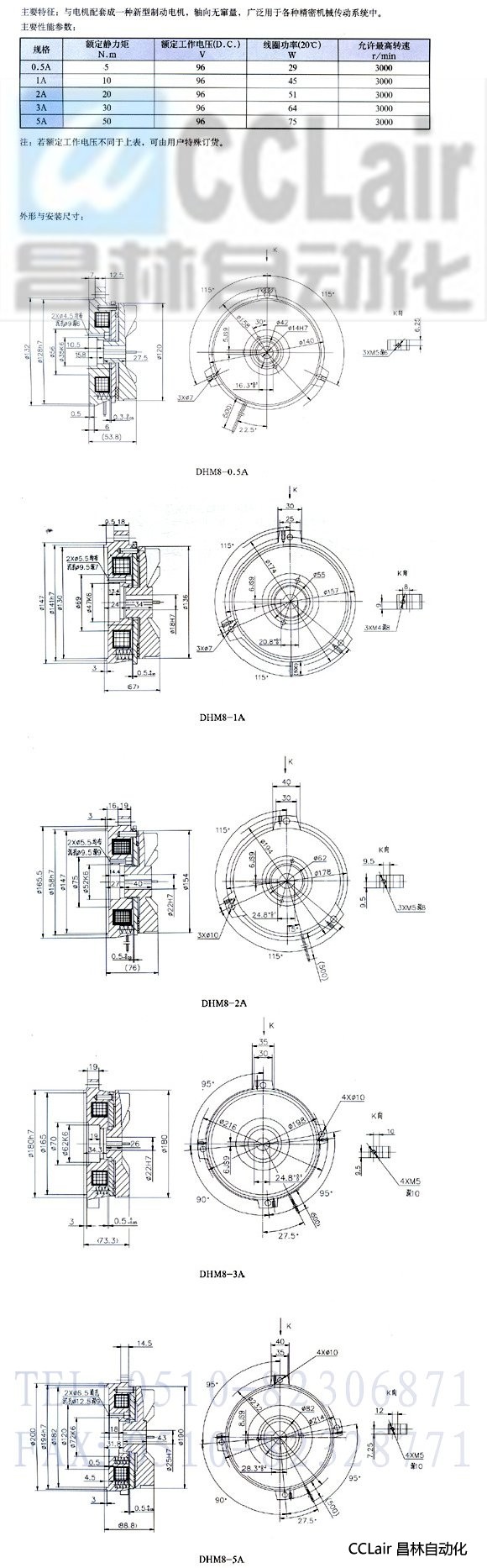 DHM8-0.5A,DHM8-1A,DHM8-2A,DHM8-3A,DHM8-5A,電磁失電制動器
