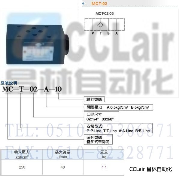 MCT-02-A-10,MCT-02-B-10,疊加式單向閥