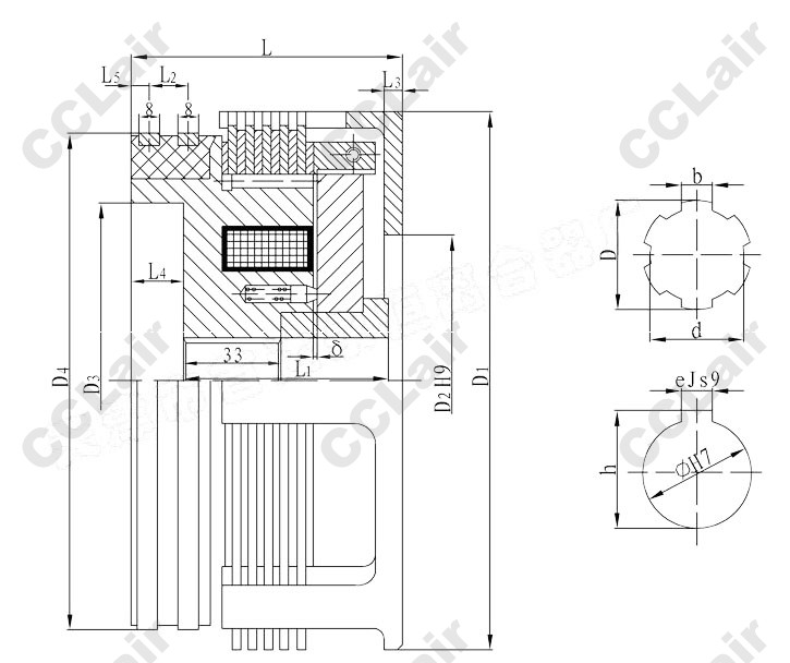 1、離合器可水平安裝也可垂直安裝,安裝在軸上的離合器應(yīng)保持主動(dòng)軸與從動(dòng)軸之間的同軸度不大于0.05mm并保證工作間隙δ值;