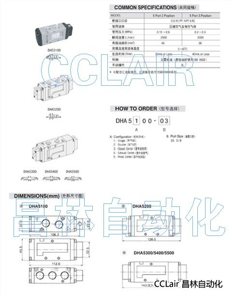 DHA5100-03,DHA5200-03,DHA5300-03,DHA5400-03,5通氣控閥