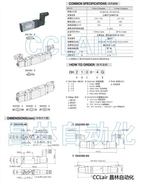 DH2100,DH2200,DH2300,DH2400,DH2500,5通先導(dǎo)型電磁閥