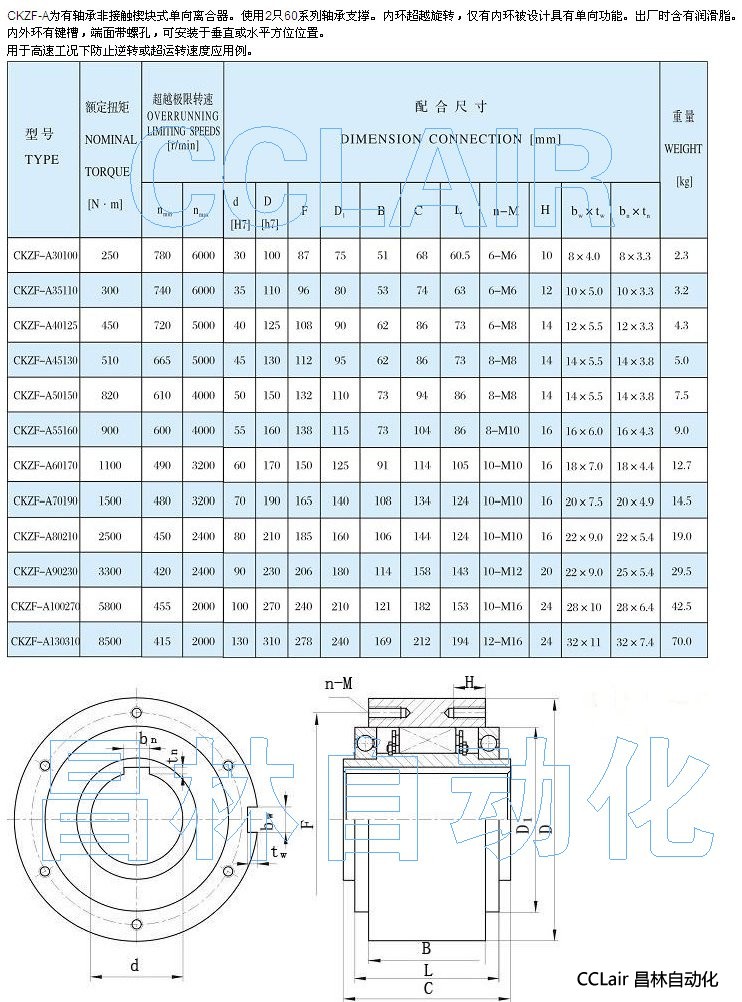 CKZF-A30100,CKZF-A35110,CKZF-A40125,單向離合器