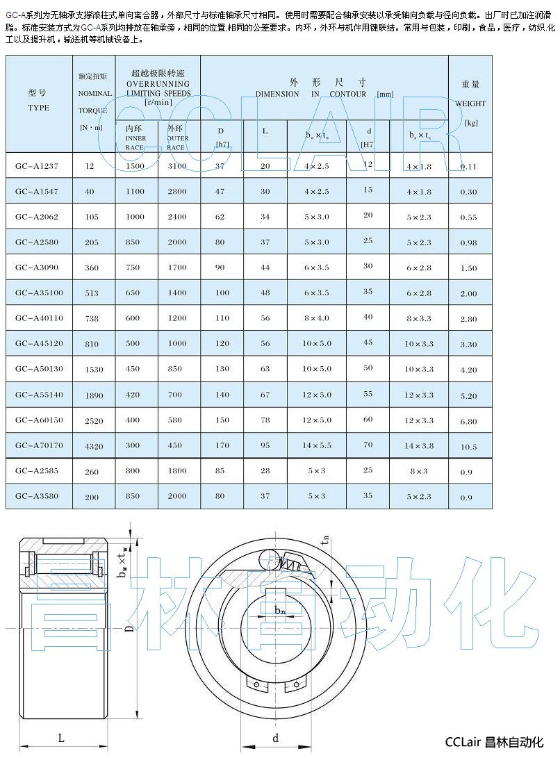 GC-A1237,GC-A1547,GC-A2062,GC-A2580,單向離合器