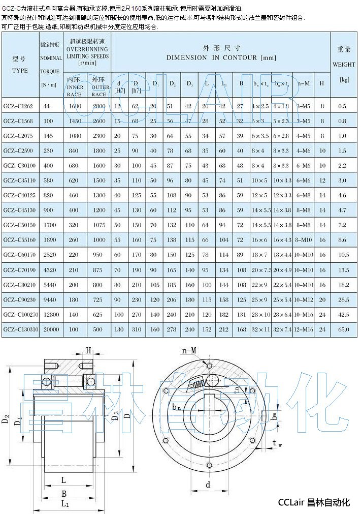 GCZ-C1262,GCZ-C1560,GCZ-C2075,GCZ-C2590,單向離合器