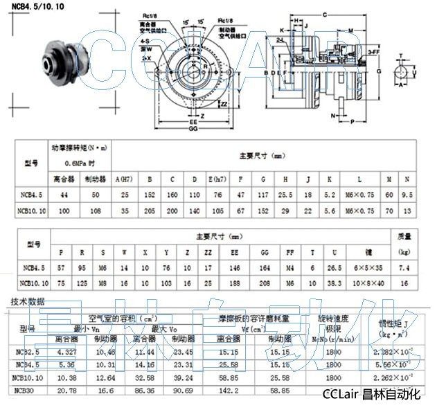NCB4.5,NCB10.10,氣動(dòng)串聯(lián)型離合制動(dòng)器