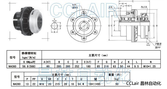 NAC60,(標(biāo)準(zhǔn)型)空壓通軸式離合器