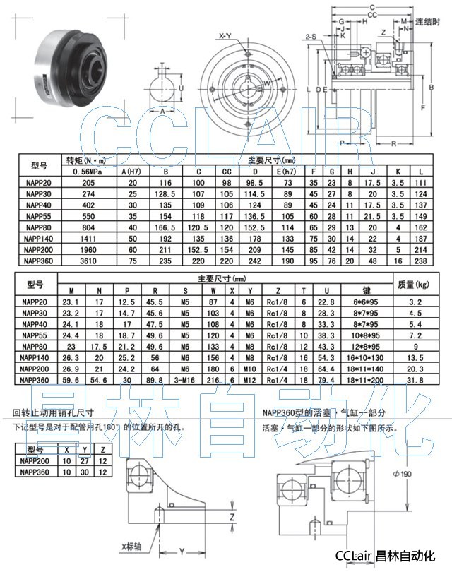 NAPP20,NAPP30,NAPP40,NAPP55,NAPP80,空壓齒合式離合器